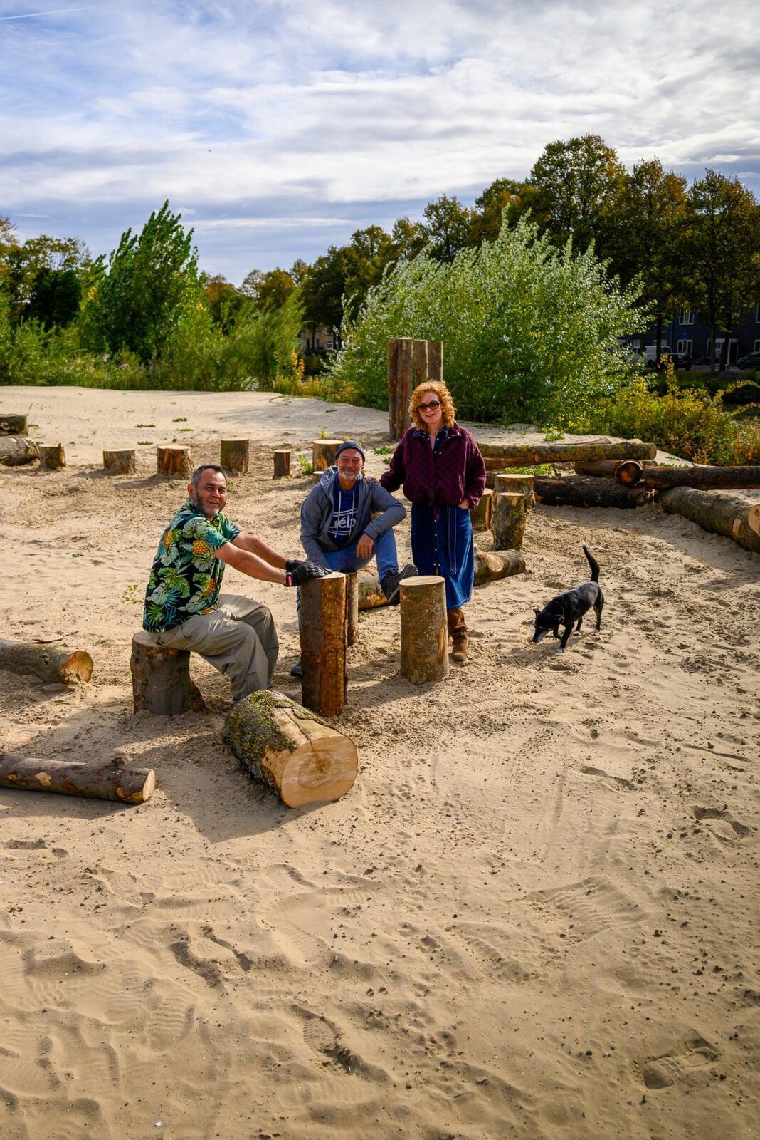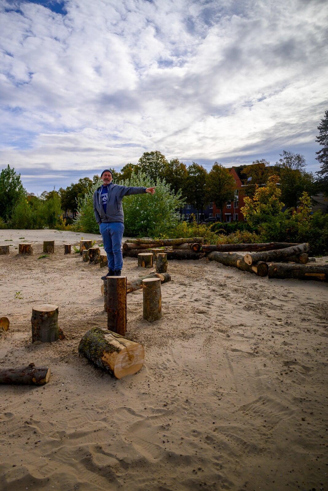 Om de juiste stappen te maken, hadden we alleen meer tijd nodig om alle uitdagingen te tackelen. Refunc verbond ons met Nanko Borsboom en Ellen Lemckert. Enthousiastelingen om een plan te maken om groen, spel- en sportaanleiding aan onze 'lege' plek toe te voegen: Zandhaven . De gemeente financierde dit plan èn maken gelijk gebruik van de mogelijkheid om te oefenen met groen en verschillende functies in de buitenruimte. Experts van de gemeente adviseerden over de beplanting, de functies en de beheerbaarheid. Al die nieuwe mensen aan tafel brachten goede nieuwe ideeën. En we legden een basis voor een community uit de omgeving van betrokken partijen. Van het John Dewey College tot de nieuwkomers en het Living Lab Binkhaven. Samen gaan we de plek eigen maken en genieten van de speelruimte in de buitenlucht. Om in het hier en nu de leefbaarheid te vergroten en te oefenen voor de toekomstige ontwikkeling van het Waterfront Park. Inmiddels geven 120 boomstammen vorm aan het kavel. Stil stond het experiment dus niet. Tijd voor een update!